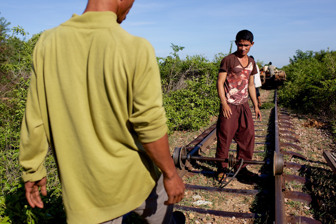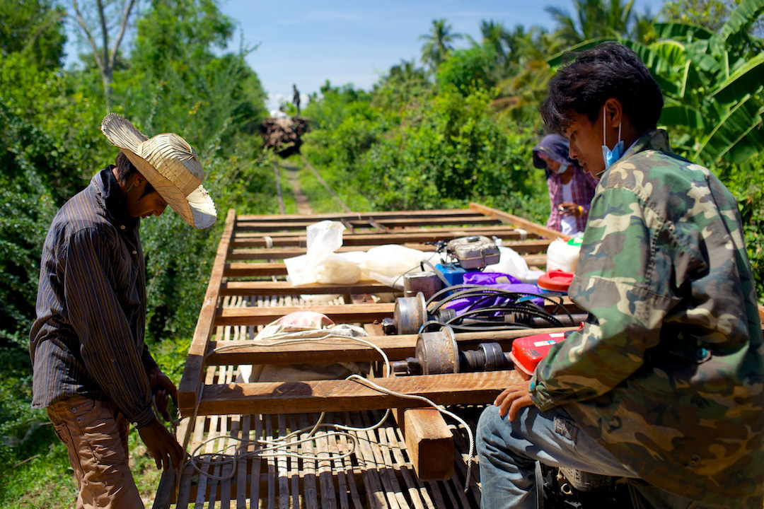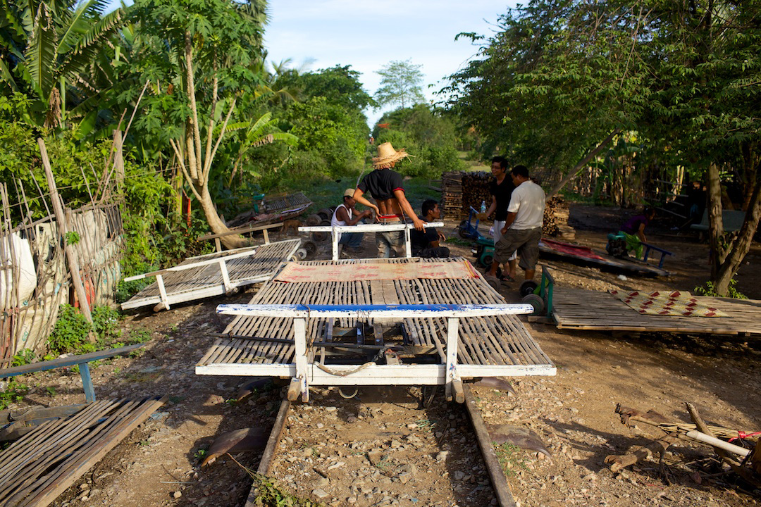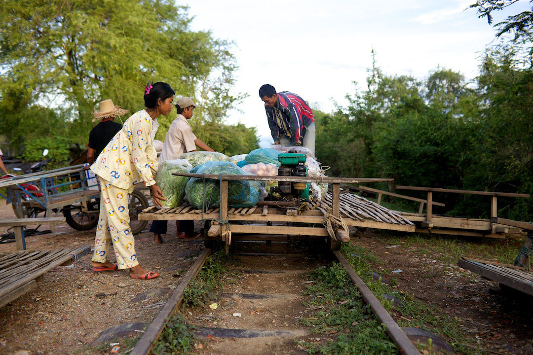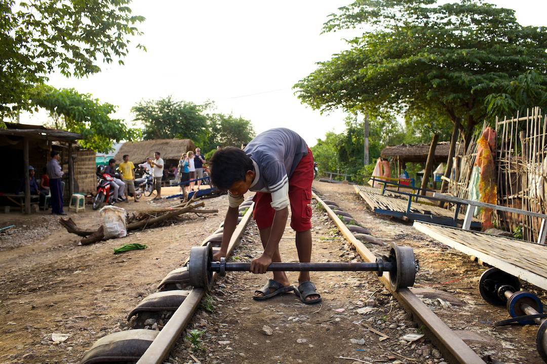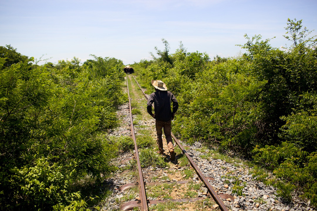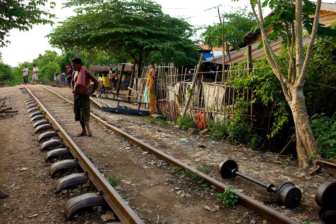 stretch of dilapidated railroad running through the Cambodian countryside. In the first decade of the 21st century, passenger trains ceased to run the tracks. But an